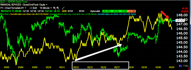 Here's GLD, 1 min is in lock step with price, not giving us any significant information yet.