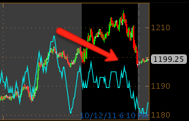 3C 5 min on ES (Black is market hours) there was a clear 3C negative divergence in E-minis today as you can see in some detail.