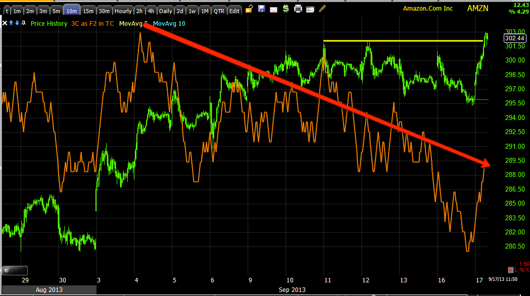 This is AMZN moving again, I said I like AMZN > $300 and we are in that area, although I'd wait for the downside confirmation (tactical or timing) signals; the strategic signals (longer term) are there and have been there for some time.
