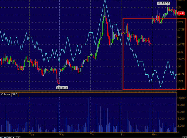 The 2x leveraged "Short Term VIX Futures", UVXY intraday 1 min chart is seeing more and more negative tone. Pay attention to the 3 different VIX assets, especially around the 5 min mark or thereabouts.