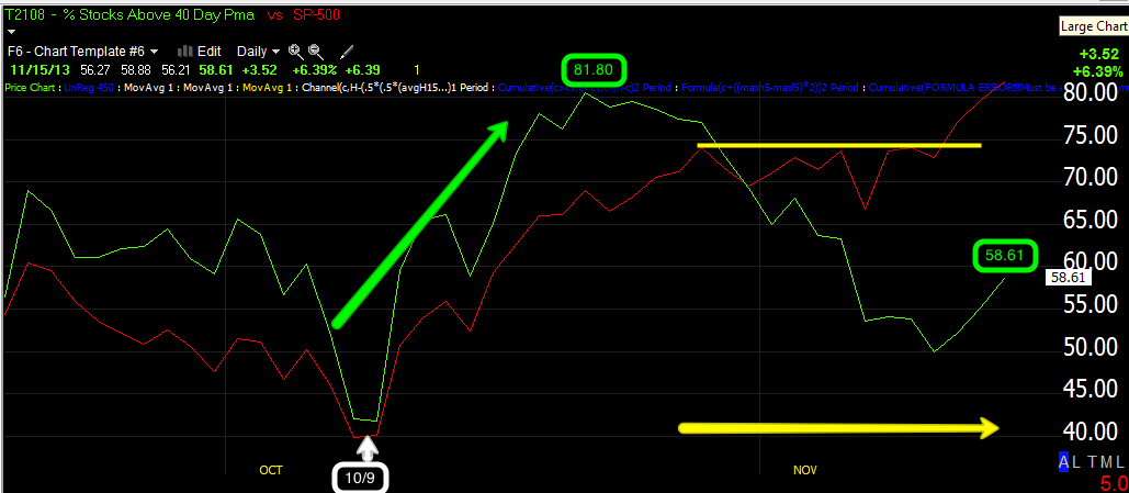 Nearly half of the NYSE is trading BELOW their 200 day moving average, but more specifically, as the SPX has gained 5.18%, the percentage has dropped from 61% to 53%, at the lows, 43%.