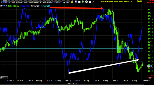 Today I noted at the end of the day we had some 1 min positive divergences, this would suggest a move higher tomorrow morning or in the first half of the day, there's no strength beyond the 1 min chart so it's not anything that will stick, but it could lift the market and then lead us to a sell-off, it needs to be watched like a hawk tomorrow because there was some serious damage done today in 3C/underlying trade in a few spots.