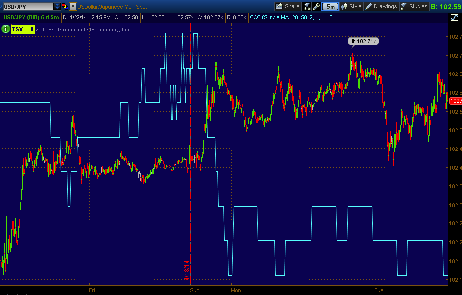 USD/JPY 5 min 3C chart still leading negative