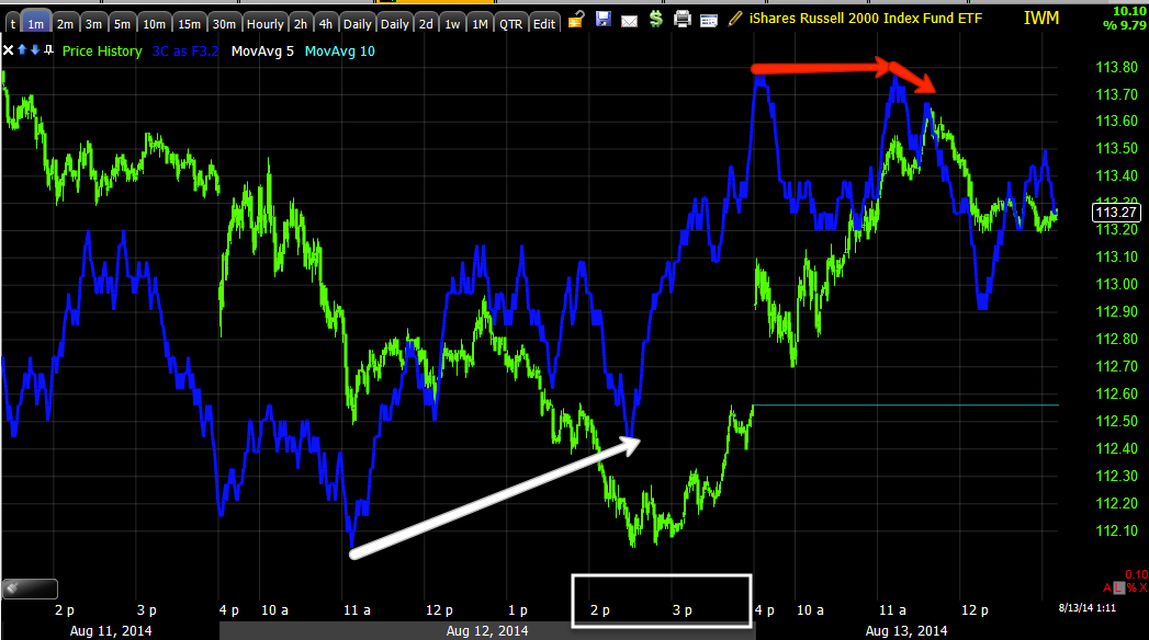 That's what I see as of right now so I suspect that we will be seeing a stronger bounce next week so I want to look for the right entry for something like the IWM calls closed earlier." 8/8/2014 1:30 p.m.