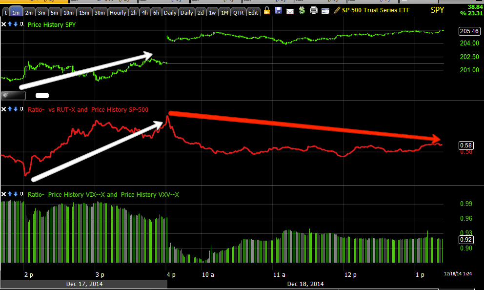 My custom TICK indicator vs the SPY, we'll also be watching for deterioration here as some has started, but again that is judging today by the sharpest small cap short squeeze in 3 years yesterday.