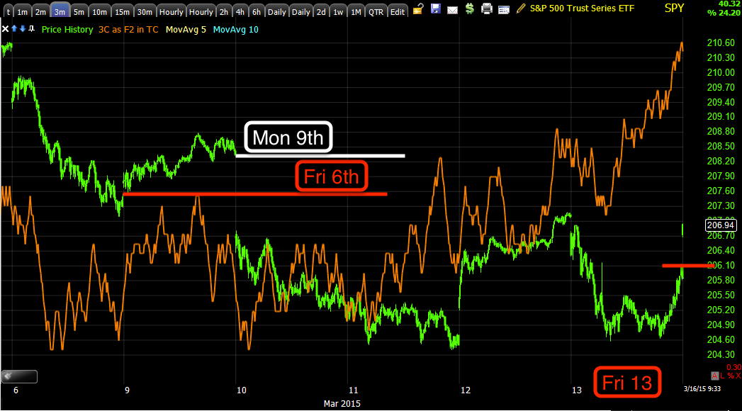 Friday the 6th's close and early strength last week on Monday the 9th as forecasted with continuing weakness (price) in to the rest of the week, Friday the 13th closes lower on the week.