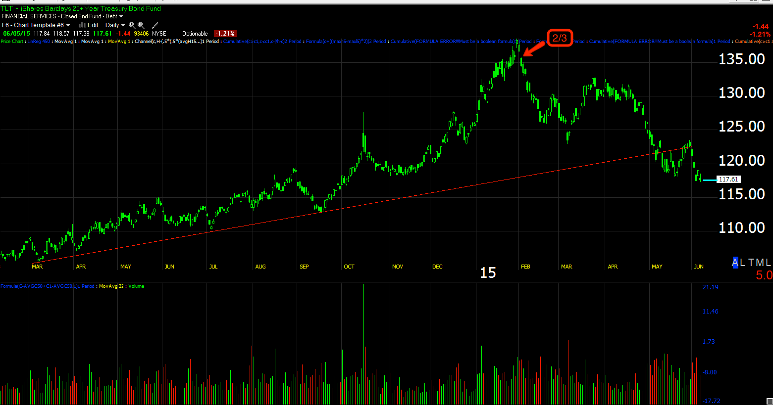 We had a lot of solid TLT (20+ year Treasury) long trades, however the charts below come from a post from February 3rd, 2015 which would have looked like this...