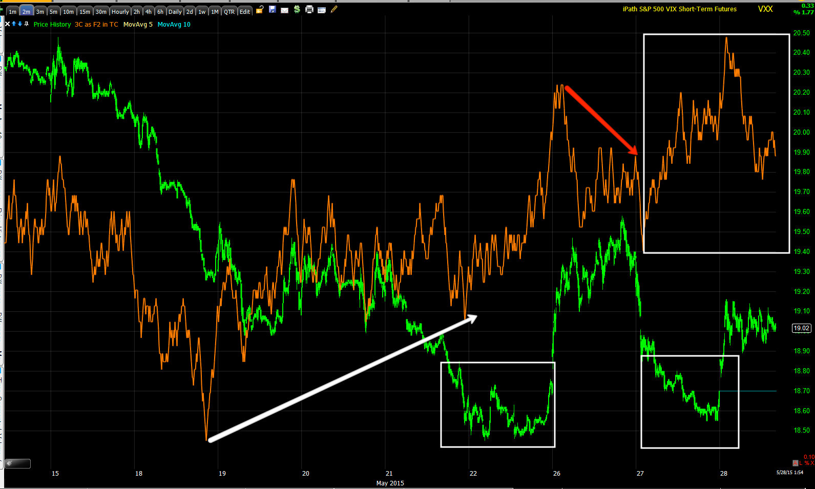 Remember the VXX charts today and then the 30/60 min $USDX. This is where the real ugly charts appear in Index futures, shorter term charts are all over the place...