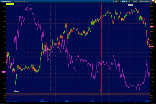 And 30 year yields which I suspect may sop acting as a leading indicator as thin liquidity seems to be hampering the Treasury market continues, but for now, Yields are acting like the typical leading indicator magnet for the SPX and should drag it lower.